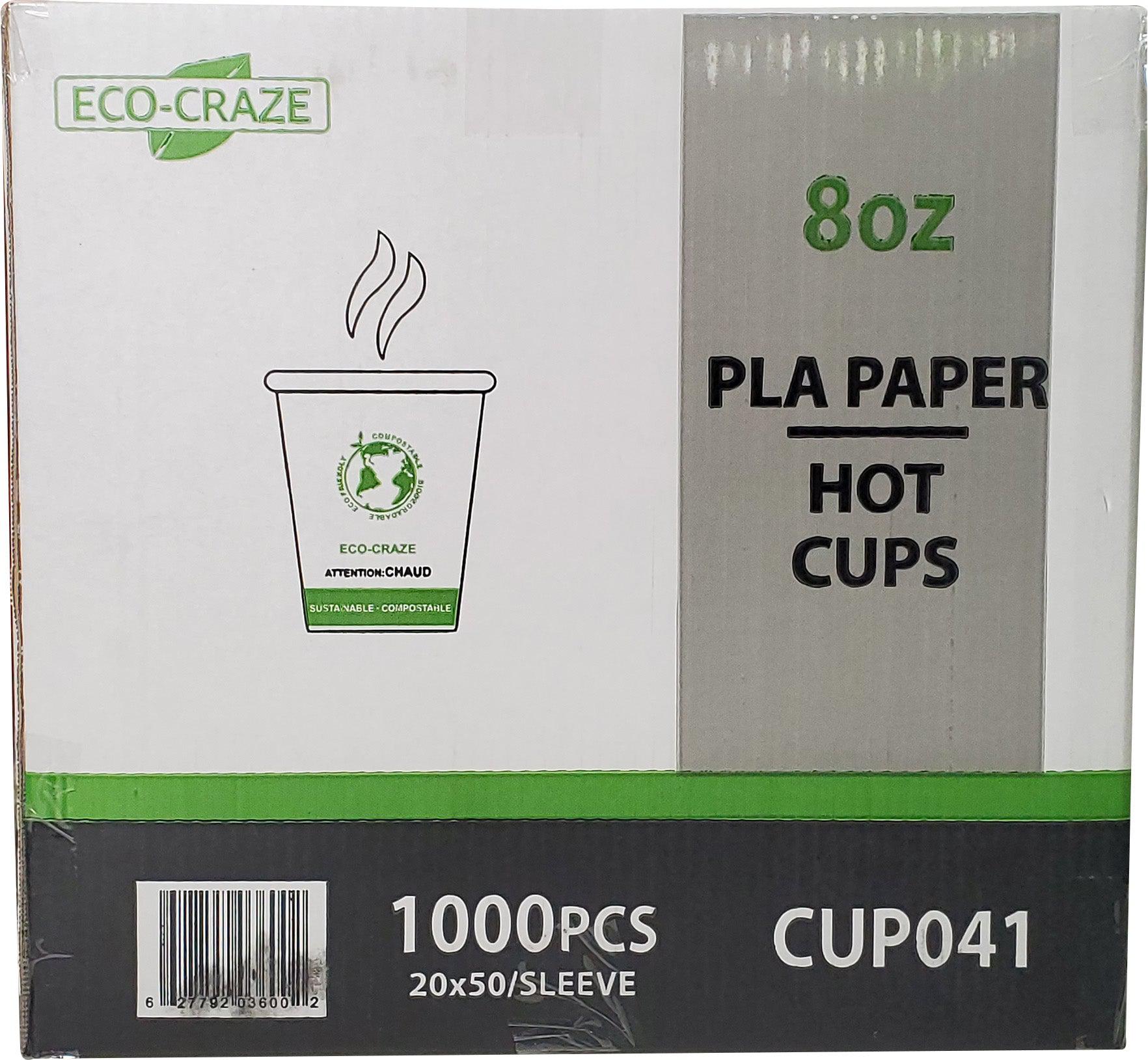 Eco-Craze - Gobelet en papier à paroi simple PLA de 8 oz - Imprimé