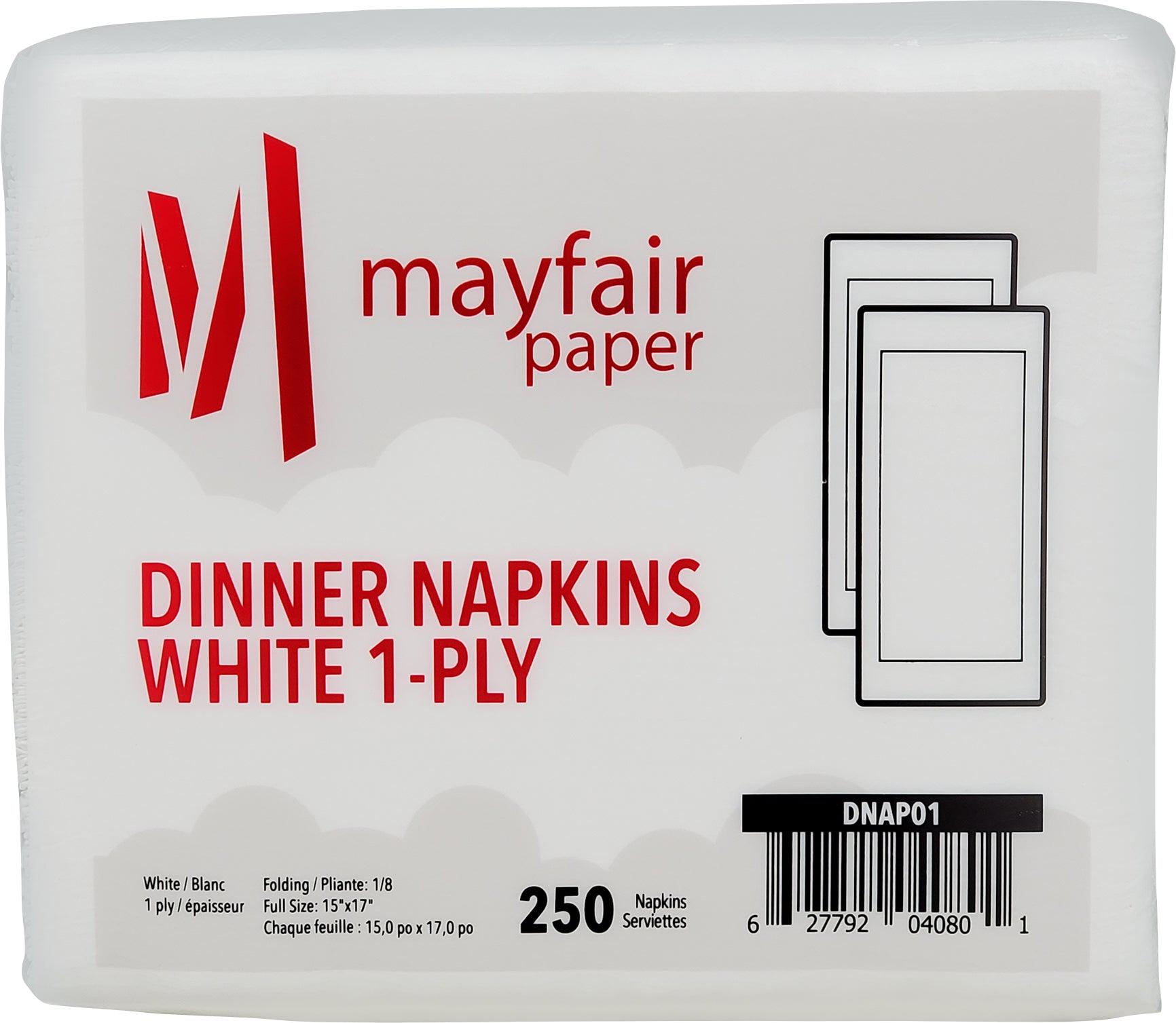 Mayfair - 1 Ply Dinner Napkins 1/8 Fold - White - DNAP01