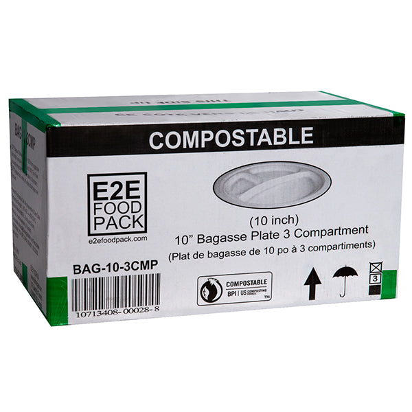 NEWWAVE - 10in SUGARCANE BAMBOO BAGASSE 3 COMP PLATE 4x125 EA